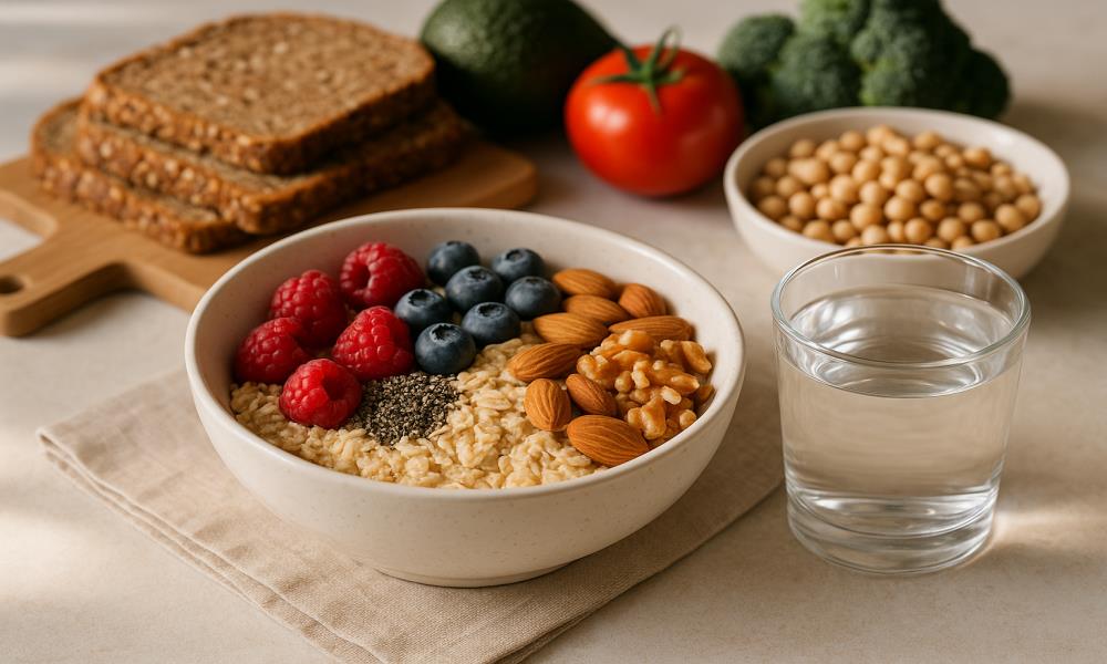 - Ergänzen – Obst, Gemüse, Nüsse, Samen oder Haferflocken gezielt in Mahlzeiten integrieren.