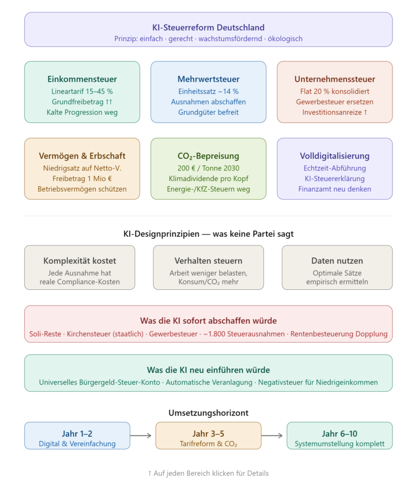 WIRD fortgesetzt: Nächste Frage: Erkläre die KI-Reform der Einkommensteuer in Deutschland im Detail – welche Steuersätze, Freibeträge und Vereinfachungen wären sinnvoll?