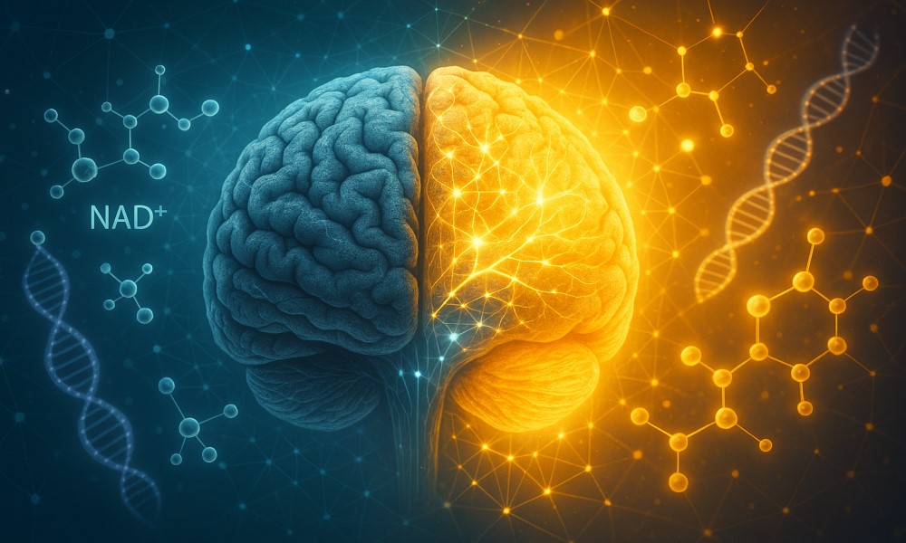 - Tierversuche zeigen, dass eine Auffüllung des NAD⁺-Spiegels – z. B. durch Vorstufen wie NMN (Nicotinamid-Mononukleotid) oder NR (Nicotinamid-Ribosid) – kognitive Funktionen verbessern kann.